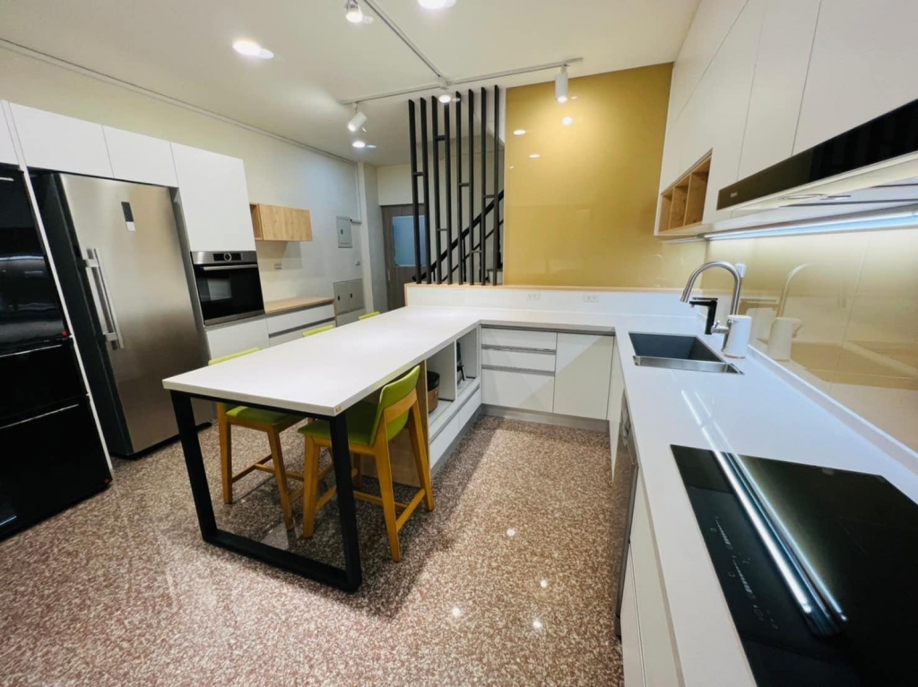 揮別傳統餐廚空間帶來的陰暗、油膩膩印象,運用中性色彩、木頭元素讓空間變得更溫暖、平易近人,簡單的色彩邏輯,帶來無負擔的清爽質感。